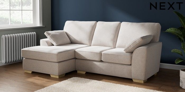 7.2.10 Stamford Small Sofa Chaise - Left Hand Multi Weave Oyster Large Square Angle - Light | Made Click here to use our website with more accessibility support, for example screen readers