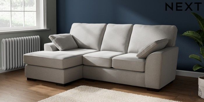 7.2.10 Stamford Small Sofa Chaise - Left Hand Natural Mix Light Grey Large Square Angle - Dark | Made Click here to use our website with more accessibility support, for example screen readers
