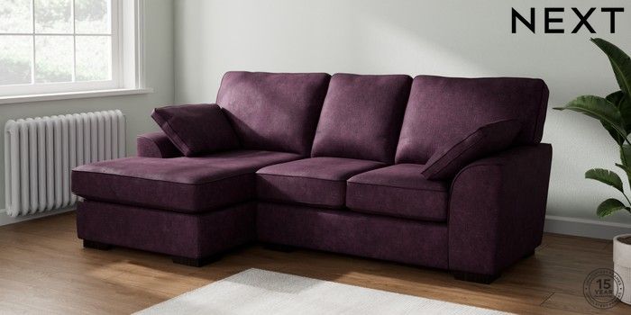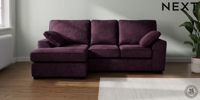 7.2.10 Stamford Small Sofa Chaise - Left Hand Plush Chenille Dark Plum Purple Large Square Angle - Dark | Made Click here to use our website with more accessibility support, for example screen readers