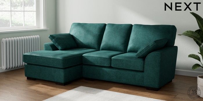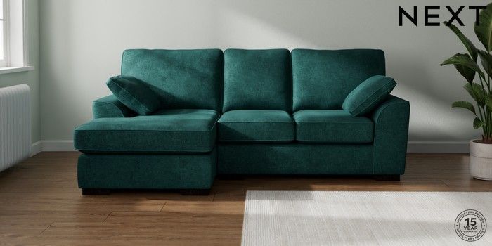 7.2.10 Stamford Small Sofa Chaise - Left Hand Plush Chenille Dark Teal Green Large Square Angle - Dark | Made Click here to use our website with more accessibility support, for example screen readers