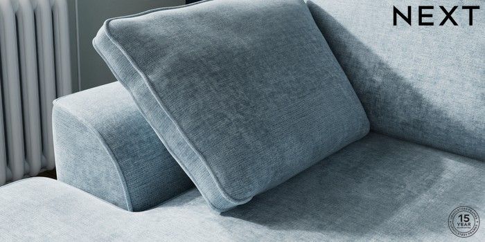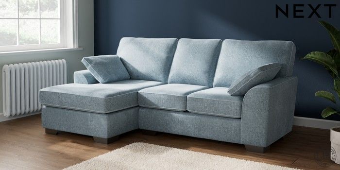 7.2.10 Stamford Small Sofa Chaise - Left Hand Plush Chenille Light Blue Large Square Angle - Gunmetal | Made Click here to use our website with more accessibility support, for example screen readers