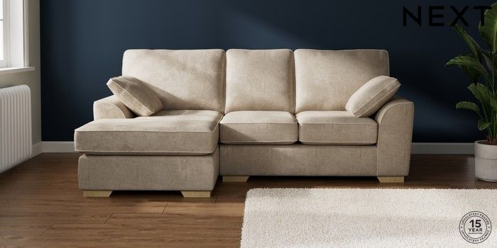 7.2.10 Stamford Small Sofa Chaise - Left Hand Plush Chenille Light Natural Large Square Angle - Light | Made Click here to use our website with more accessibility support, for example screen readers