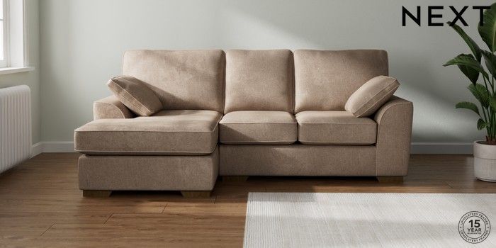 7.2.10 Stamford Small Sofa Chaise - Left Hand Plush Chenille Mid Natural Large Square Angle - Mid | Made Click here to use our website with more accessibility support, for example screen readers