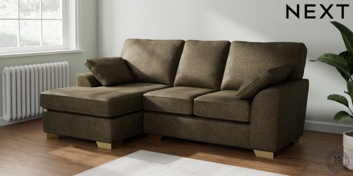 7.2.10 Stamford Small Sofa Chaise - Left Hand Plush Chenille Moss Green Large Square Angle - Brushed Brass | Made Click here to use our website with more accessibility support, for example screen readers