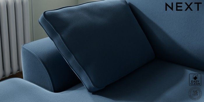 7.2.10 Stamford Small Sofa Chaise - Left Hand Plush Velvet Easy Clean Airforce Blue Large Square Angle - Dark | Made Click here to use our website with more accessibility support, for example screen readers