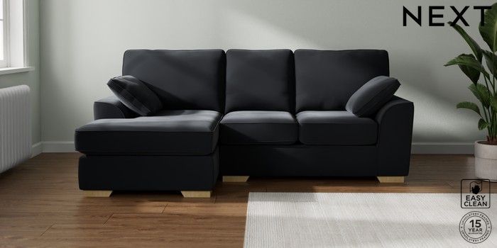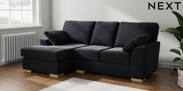 7.2.10 Stamford Small Sofa Chaise - Left Hand Plush Velvet Easy Clean Charcoal Grey Large Square Angle - Light | Made Click here to use our website with more accessibility support, for example screen readers