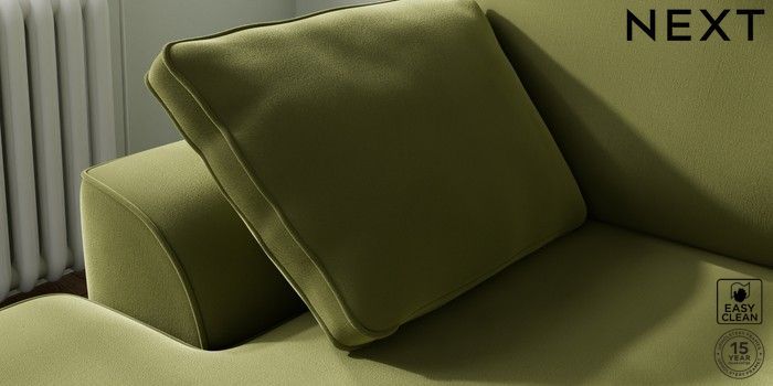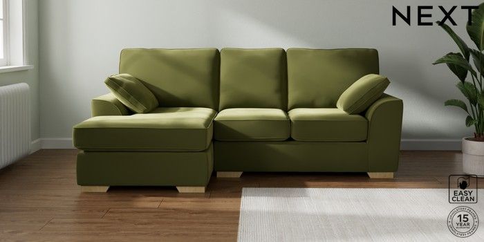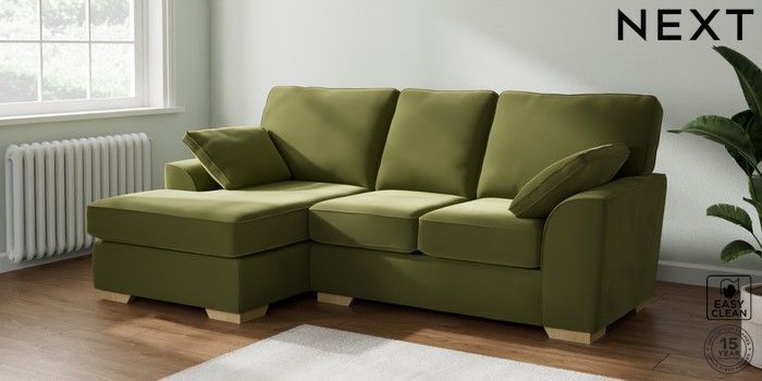 7.2.10 Stamford Small Sofa Chaise - Left Hand Plush Velvet Easy Clean Mid Olive Green Large Square Angle - Light | Made Click here to use our website with more accessibility support, for example screen readers