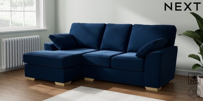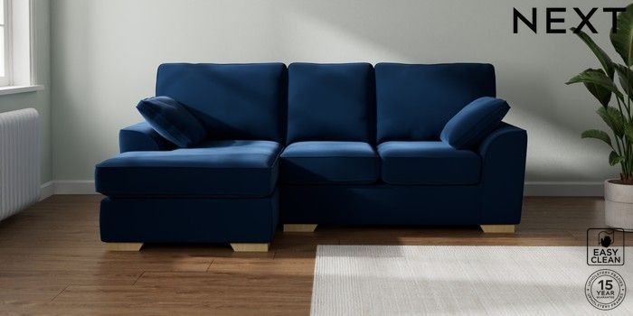 7.2.10 Stamford Small Sofa Chaise - Left Hand Plush Velvet Easy Clean Navy Blue Large Square Angle - Light | Made Click here to use our website with more accessibility support, for example screen readers