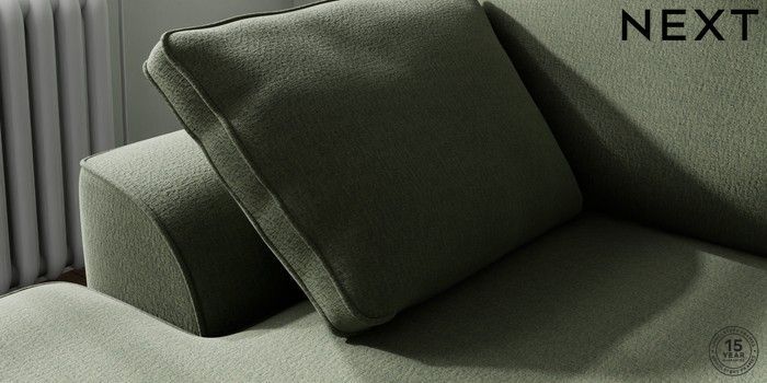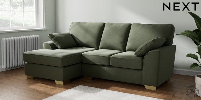 7.2.10 Stamford Small Sofa Chaise - Left Hand Relaxed Linen Look Dark Green Large Square Angle - Brushed Brass | Made Click here to use our website with more accessibility support, for example screen readers