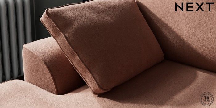 7.2.10 Stamford Small Sofa Chaise - Left Hand Relaxed Linen Look Light Rust Brown Large Square Angle - Chrome Metal | Made Click here to use our website with more accessibility support, for example screen readers