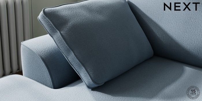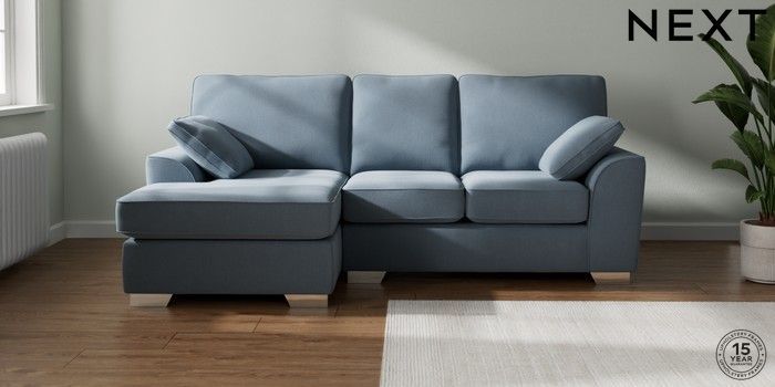 7.2.10 Stamford Small Sofa Chaise - Left Hand Relaxed Linen Look Mid Blue Large Square Angle - Chrome Metal | Made Click here to use our website with more accessibility support, for example screen readers