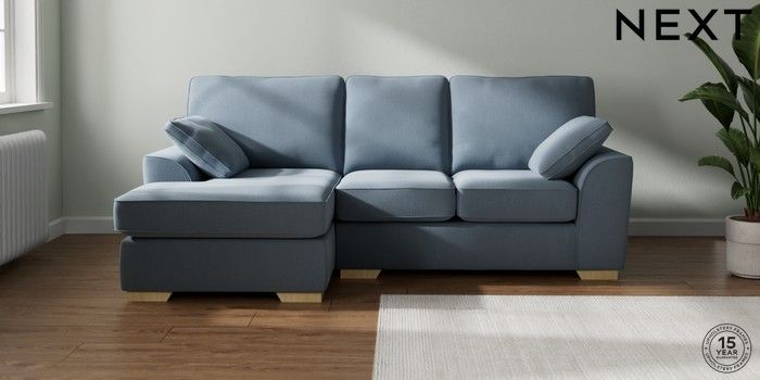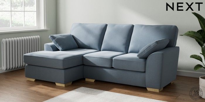 7.2.10 Stamford Small Sofa Chaise - Left Hand Relaxed Linen Look Mid Blue Large Square Angle - Light | Made Click here to use our website with more accessibility support, for example screen readers