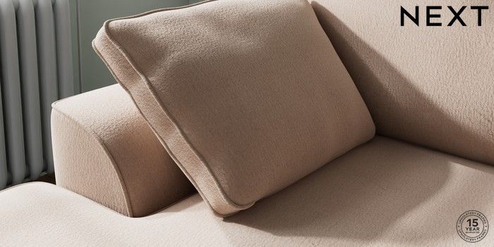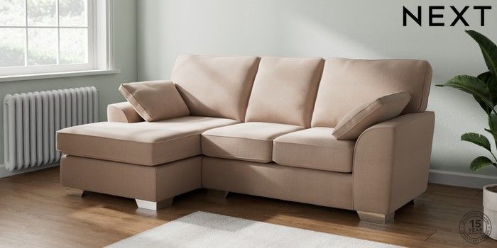 7.2.10 Stamford Small Sofa Chaise - Left Hand Relaxed Linen Look Mid Natural Large Square Angle - Chrome Metal | Made Click here to use our website with more accessibility support, for example screen readers