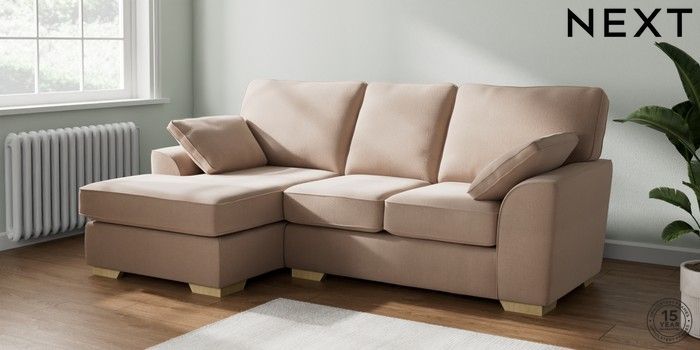 7.2.10 Stamford Small Sofa Chaise - Left Hand Relaxed Linen Look Mid Natural Large Square Angle - Light | Made Click here to use our website with more accessibility support, for example screen readers