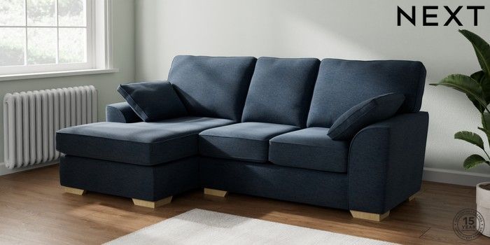 7.2.10 Stamford Small Sofa Chaise - Left Hand Ripple Chenille Dark Blue Large Square Angle - Light | Made Click here to use our website with more accessibility support, for example screen readers