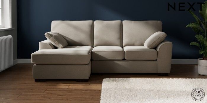 7.2.10 Stamford Small Sofa Chaise - Left Hand Ripple Chenille Light Natural Large Square Angle - Dark | Made Click here to use our website with more accessibility support, for example screen readers