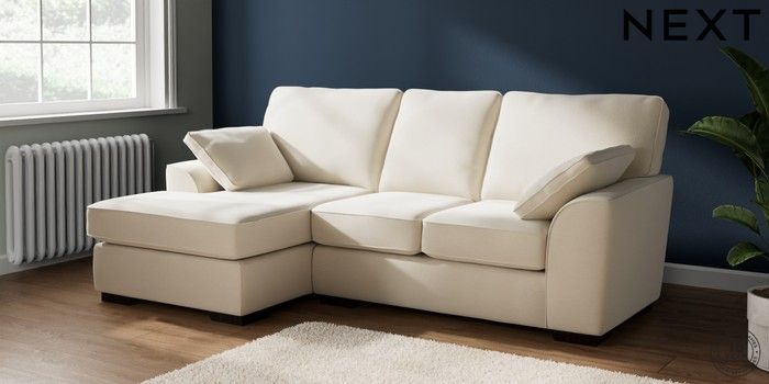 7.2.10 Stamford Small Sofa Chaise - Left Hand Ripple Chenille Oyster Large Square Angle - Dark | Made Click here to use our website with more accessibility support, for example screen readers
