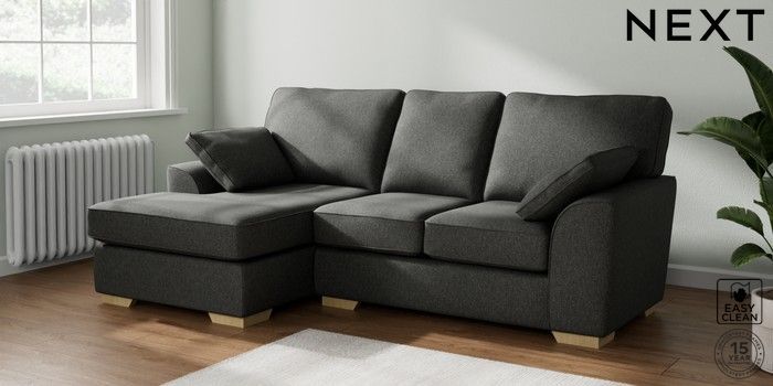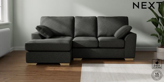 7.2.10 Stamford Small Sofa Chaise - Left Hand Tweedy Blend Easy Clean Charcoal Grey Large Square Angle - Light | Made Click here to use our website with more accessibility support, for example screen readers