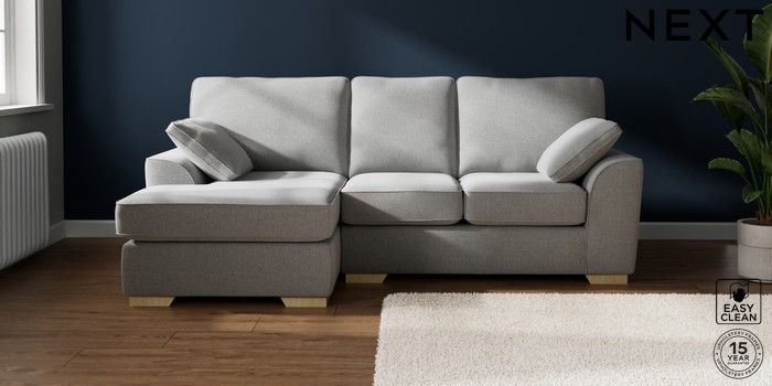 7.2.10 Stamford Small Sofa Chaise - Left Hand Tweedy Blend Easy Clean Light Silver Grey Large Square Angle - Light | Made Click here to use our website with more accessibility support, for example screen readers