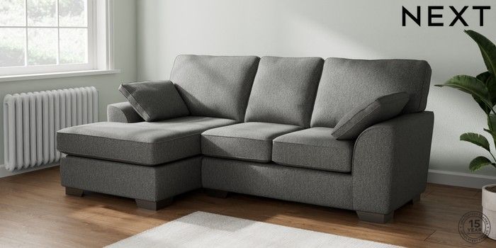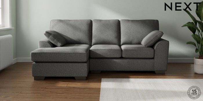 7.2.10 Stamford Small Sofa Chaise - Left Hand Tweedy Chenille Dark Grey Large Square Angle - Gunmetal | Made Click here to use our website with more accessibility support, for example screen readers