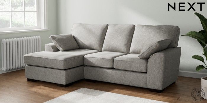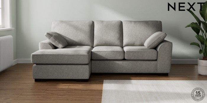 7.2.10 Stamford Small Sofa Chaise - Left Hand Tweedy Chenille Mid Grey Large Square Angle - Dark | Made Click here to use our website with more accessibility support, for example screen readers