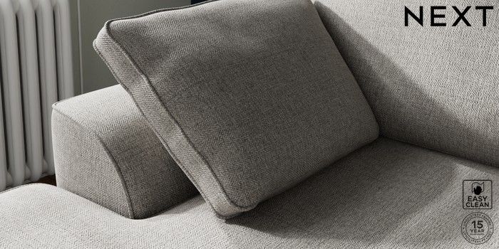 7.2.10 Stamford Small Sofa Chaise - Left Hand Woven Chenille Easy Clean Light Grey Large Square Angle - Chrome Metal | Made Click here to use our website with more accessibility support, for example screen readers