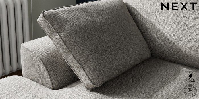 7.2.10 Stamford Small Sofa Chaise - Left Hand Woven Chenille Easy Clean Light Grey Large Square Angle - Light | Made Click here to use our website with more accessibility support, for example screen readers