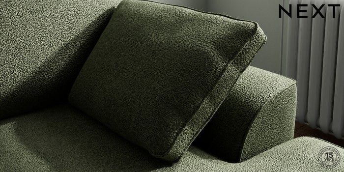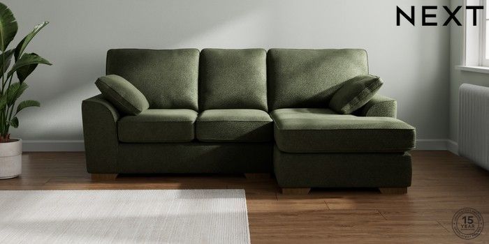 7.2.10 Stamford Small Sofa Chaise - Right Hand Boucle Chenille Dark Moss Green Large Square Angle - Mid | Made Click here to use our website with more accessibility support, for example screen readers