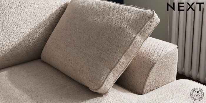 7.2.10 Stamford Small Sofa Chaise - Right Hand Boucle Chenille Light Natural Large Square Angle - Brushed Brass | Made Click here to use our website with more accessibility support, for example screen readers