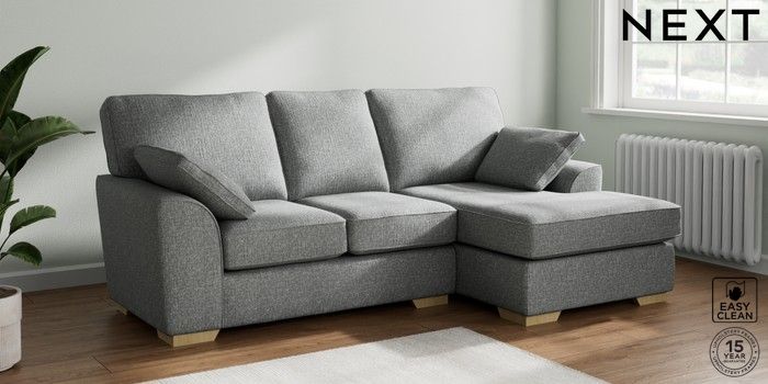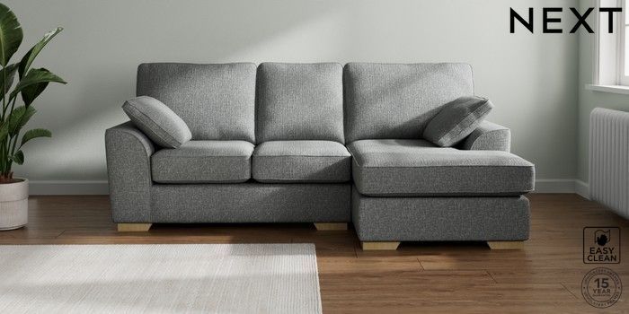 7.2.10 Stamford Small Sofa Chaise - Right Hand Chunky Boucle Easy Clean Mid Grey Large Square Angle - Light | Made Click here to use our website with more accessibility support, for example screen readers
