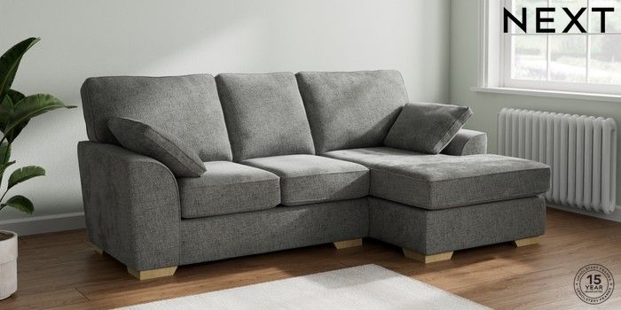 7.2.10 Stamford Small Sofa Chaise - Right Hand Chunky Chenille Dark Grey Large Square Angle - Light | Made Click here to use our website with more accessibility support, for example screen readers
