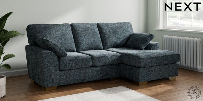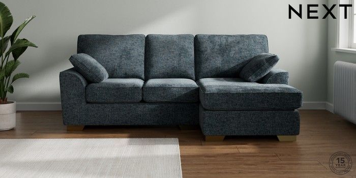 7.2.10 Stamford Small Sofa Chaise - Right Hand Chunky Chenille Dark Navy Blue Large Square Angle - Brushed Brass | Made Click here to use our website with more accessibility support, for example screen readers