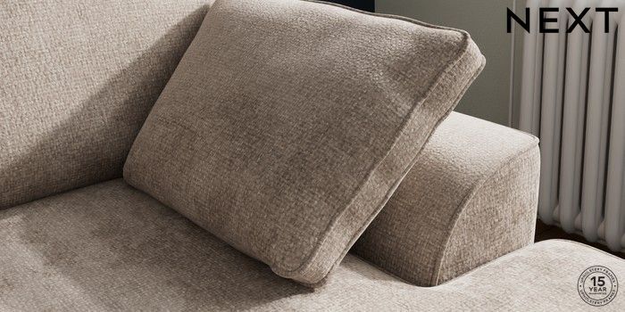 7.2.10 Stamford Small Sofa Chaise - Right Hand Chunky Chenille Light Dove Large Square Angle - Brushed Brass | Made Click here to use our website with more accessibility support, for example screen readers