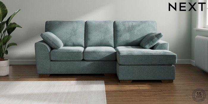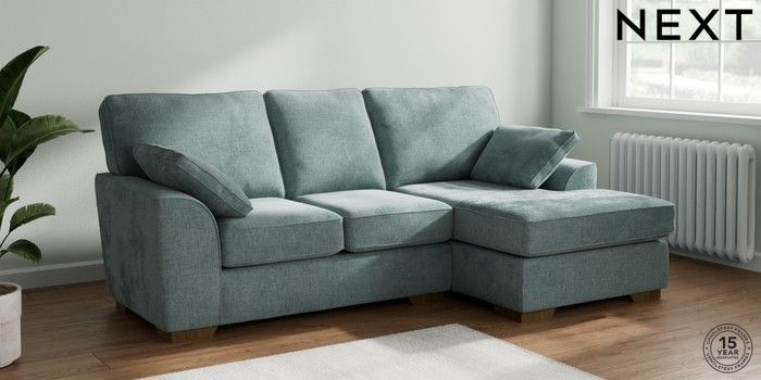 7.2.10 Stamford Small Sofa Chaise - Right Hand Chunky Chenille Light Teal Green Large Square Angle - Mid | Made Click here to use our website with more accessibility support, for example screen readers