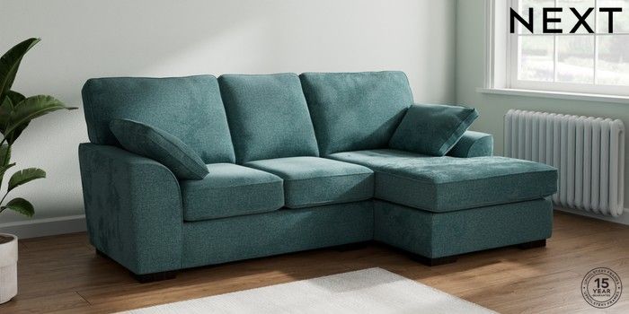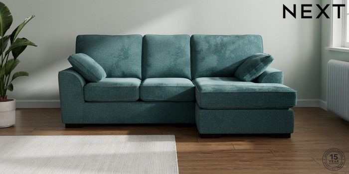 7.2.10 Stamford Small Sofa Chaise - Right Hand Chunky Chenille Mid Teal Green Large Square Angle - Dark | Made Click here to use our website with more accessibility support, for example screen readers