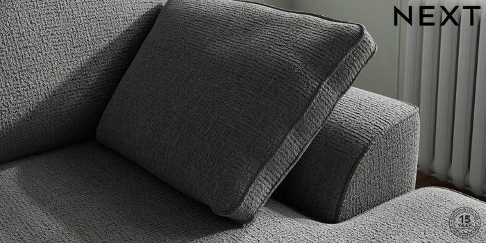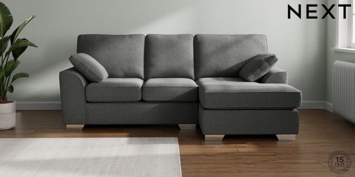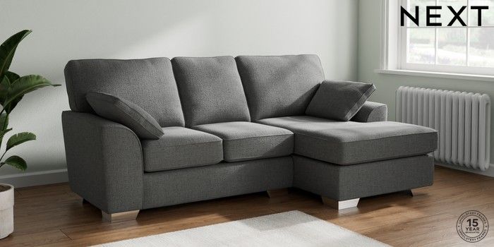 7.2.10 Stamford Small Sofa Chaise - Right Hand Chunky Texture Dark Grey Large Square Angle - Chrome Metal | Made Click here to use our website with more accessibility support, for example screen readers