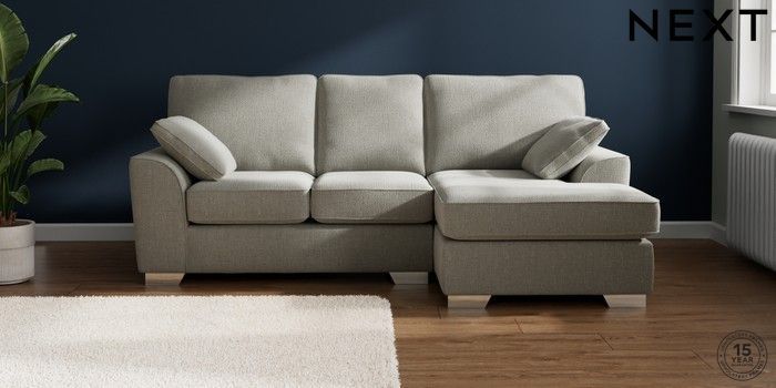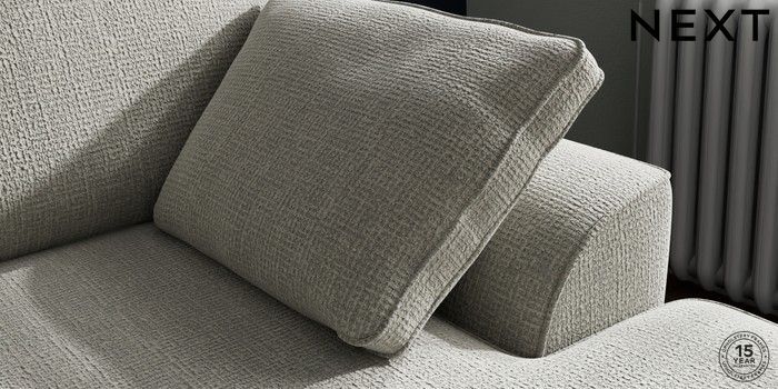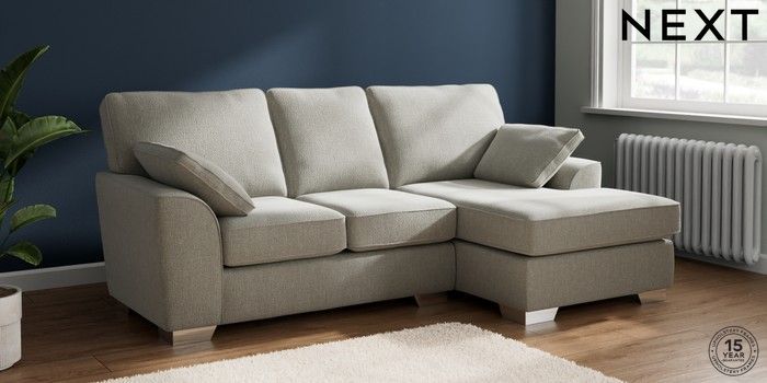 7.2.10 Stamford Small Sofa Chaise - Right Hand Chunky Texture Dove Large Square Angle - Chrome Metal | Made Click here to use our website with more accessibility support, for example screen readers
