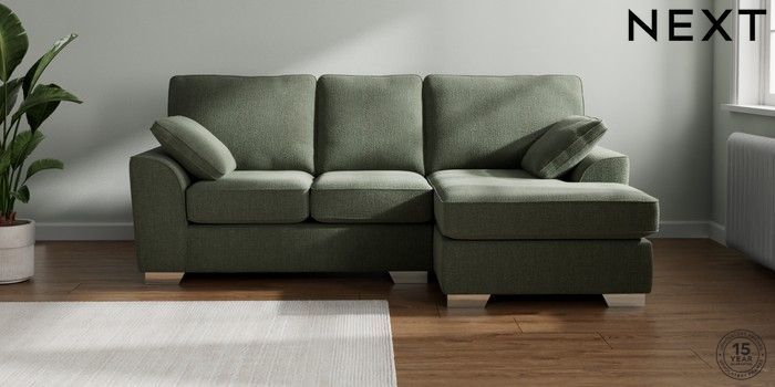 7.2.10 Stamford Small Sofa Chaise - Right Hand Chunky Texture Mid Forest Green Large Square Angle - Chrome Metal | Made Click here to use our website with more accessibility support, for example screen readers