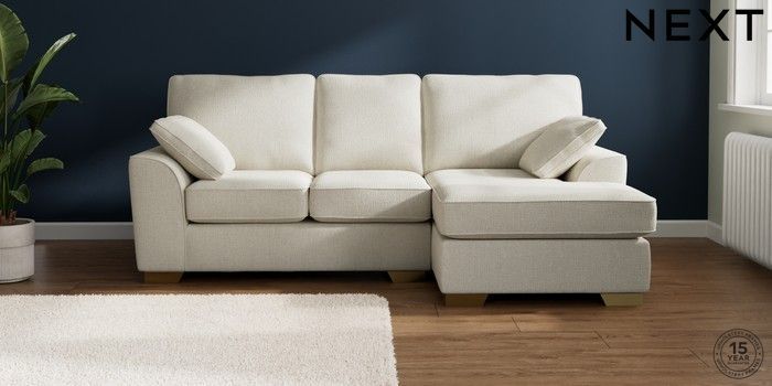 7.2.10 Stamford Small Sofa Chaise - Right Hand Chunky Texture Oyster Large Square Angle - Brushed Brass | Made Click here to use our website with more accessibility support, for example screen readers