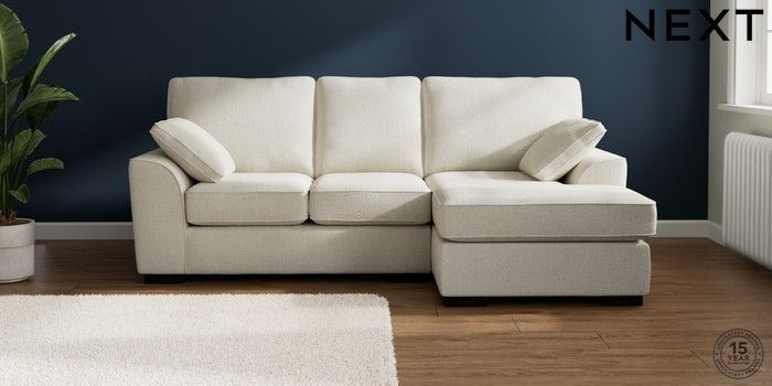 7.2.10 Stamford Small Sofa Chaise - Right Hand Chunky Texture Oyster Large Square Angle - Dark | Made Click here to use our website with more accessibility support, for example screen readers