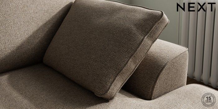 7.2.10 Stamford Small Sofa Chaise - Right Hand Chunky Weave Dark Natural Large Square Angle - Brushed Brass | Made Click here to use our website with more accessibility support, for example screen readers