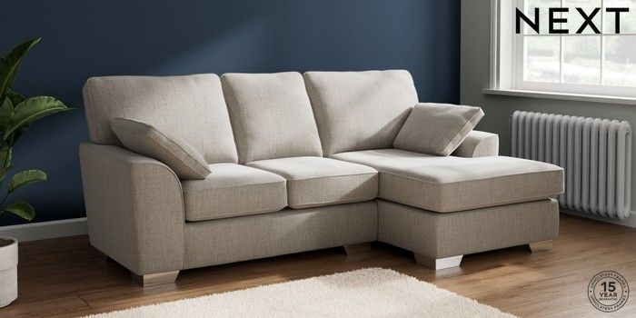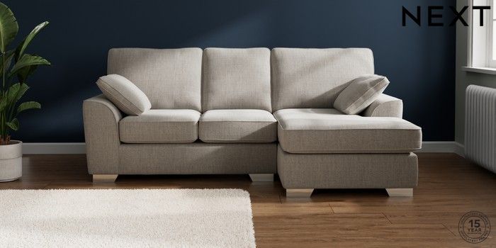 7.2.10 Stamford Small Sofa Chaise - Right Hand Chunky Weave Dove Grey Large Square Angle - Chrome Metal | Made Click here to use our website with more accessibility support, for example screen readers