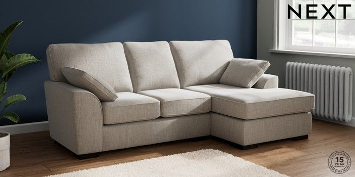 7.2.10 Stamford Small Sofa Chaise - Right Hand Chunky Weave Dove Grey Large Square Angle - Dark | Made Click here to use our website with more accessibility support, for example screen readers