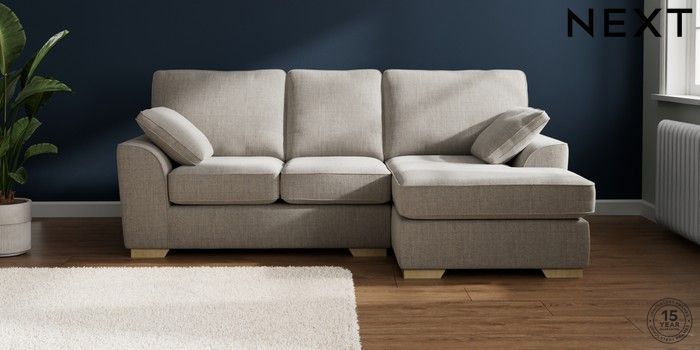 7.2.10 Stamford Small Sofa Chaise - Right Hand Chunky Weave Dove Grey Large Square Angle - Light | Made Click here to use our website with more accessibility support, for example screen readers