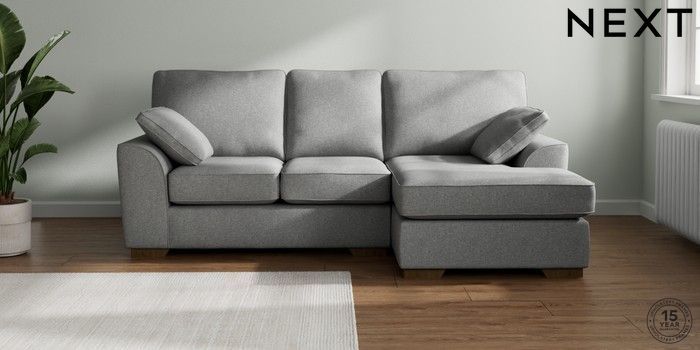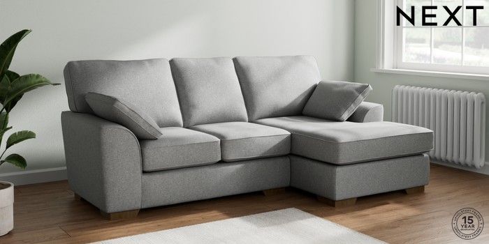 7.2.10 Stamford Small Sofa Chaise - Right Hand Chunky Weave Mid Grey Large Square Angle - Mid | Made Click here to use our website with more accessibility support, for example screen readers