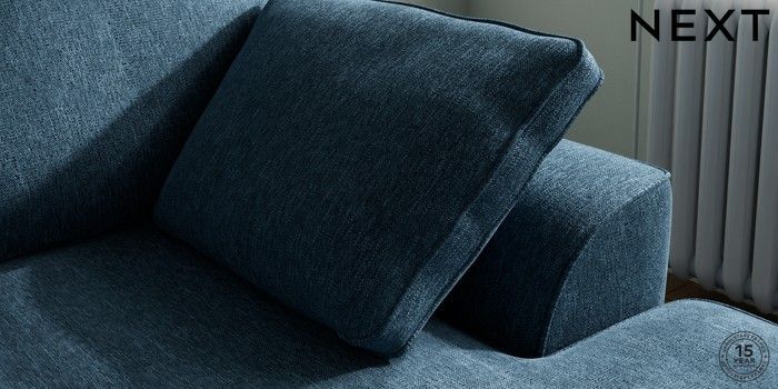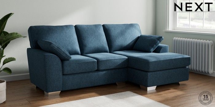 7.2.10 Stamford Small Sofa Chaise - Right Hand Cotswold Chenille Dark Blue Large Square Angle - Chrome Metal | Made Click here to use our website with more accessibility support, for example screen readers