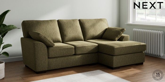 7.2.10 Stamford Small Sofa Chaise - Right Hand Cotswold Chenille Dark Green Large Square Angle - Dark | Made Click here to use our website with more accessibility support, for example screen readers