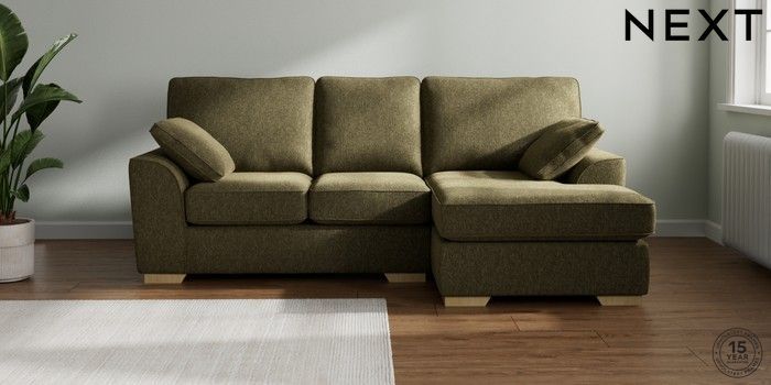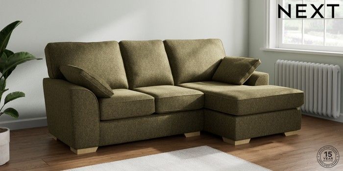 7.2.10 Stamford Small Sofa Chaise - Right Hand Cotswold Chenille Dark Green Large Square Angle - Light | Made Click here to use our website with more accessibility support, for example screen readers