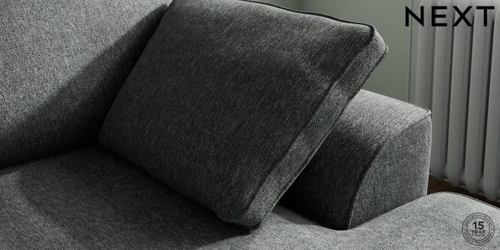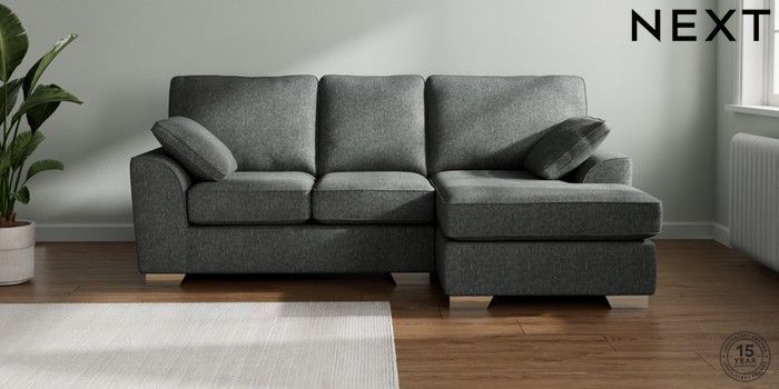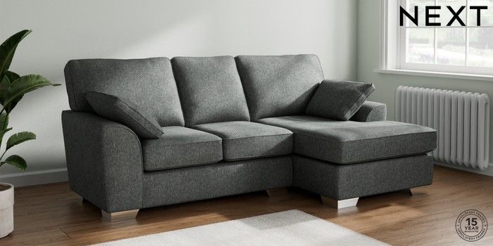 7.2.10 Stamford Small Sofa Chaise - Right Hand Cotswold Chenille Dark Grey Large Square Angle - Chrome Metal | Made Click here to use our website with more accessibility support, for example screen readers