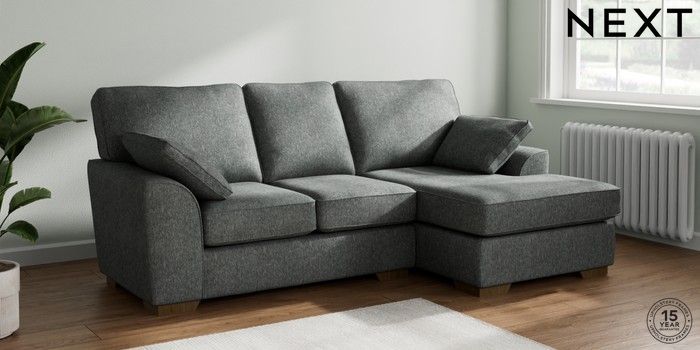 7.2.10 Stamford Small Sofa Chaise - Right Hand Cotswold Chenille Dark Grey Large Square Angle - Mid | Made Click here to use our website with more accessibility support, for example screen readers